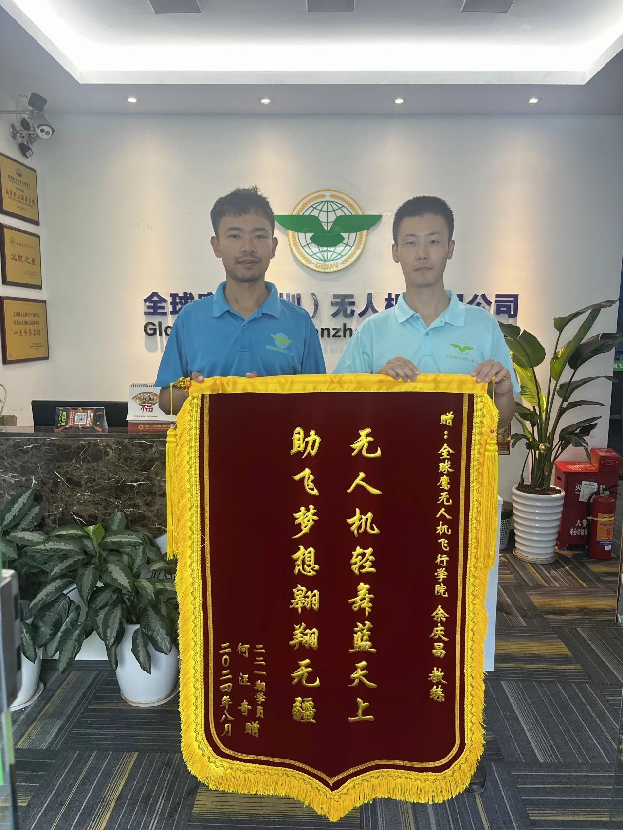 今天,全球鷹無人機培訓基地教員靳笑文、余慶昌分別收到來自畢業學員贈送的錦旗,這不僅是對兩位教員個人能力的認可,也是對全球鷹無人機培訓基地教學質量的又一次有力證明。