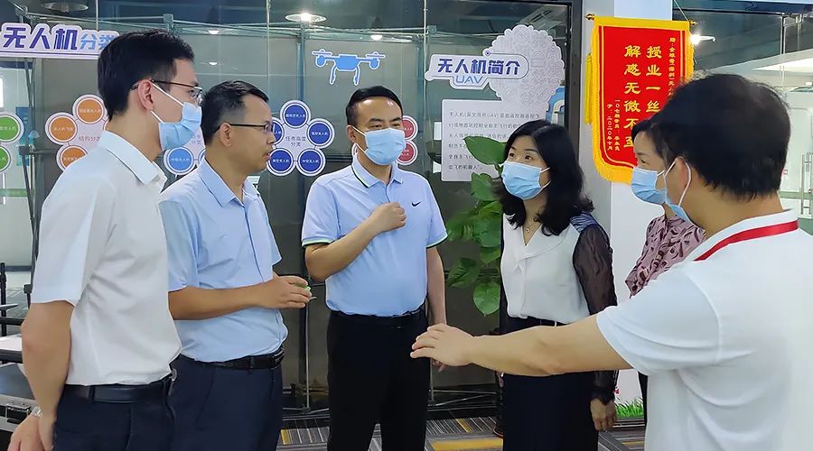 余景兵董事長為考察團科普了工業級無人機的基礎知識,并介紹了無人機在國土查違、電力巡線、農林植保等方向的應用,和伍春華副部長就工業級無人機應用及市場發展方向進行了深入交流。